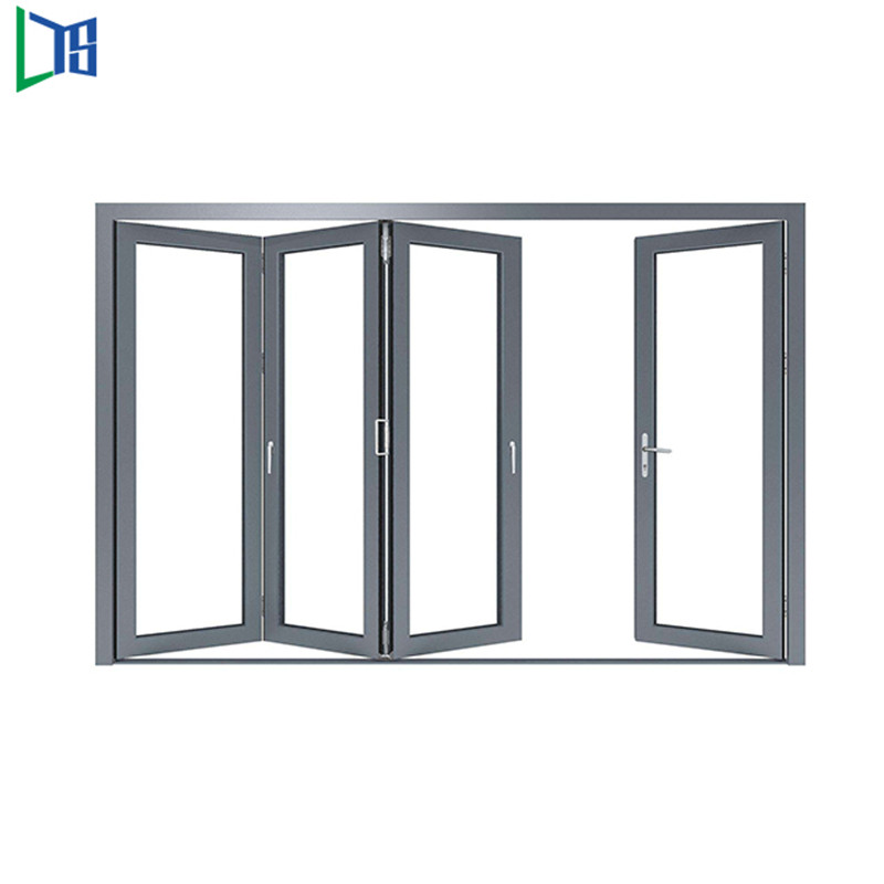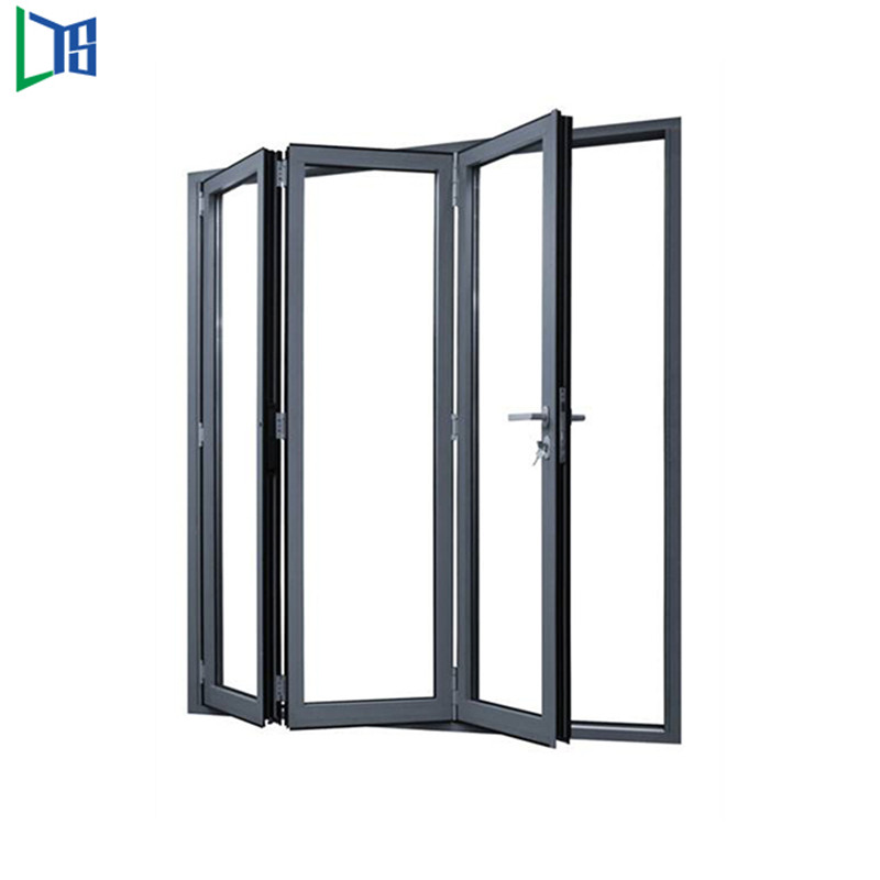 Ușă pliabilă Serie LYS 50 cu geamuri de marcă dublă, acoperire cu pulbere, granulație din lemn finisată