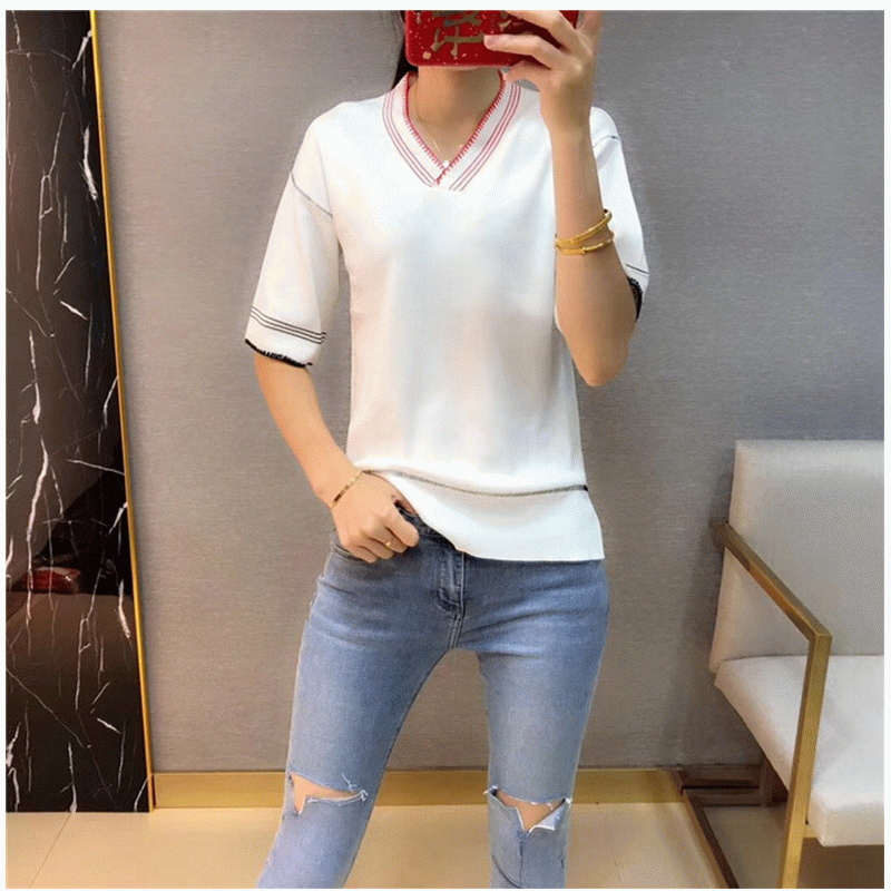 Pulover cu guler din mână cu mânecă slash cu mâneci slash cu pulă de vară